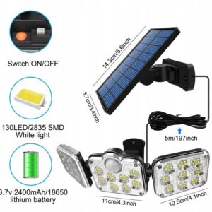 LAMPA SOLARNA Z CZUJNIKIEM RUCHU I ZMIERZCHU 118LED SYMBOL RJ5044